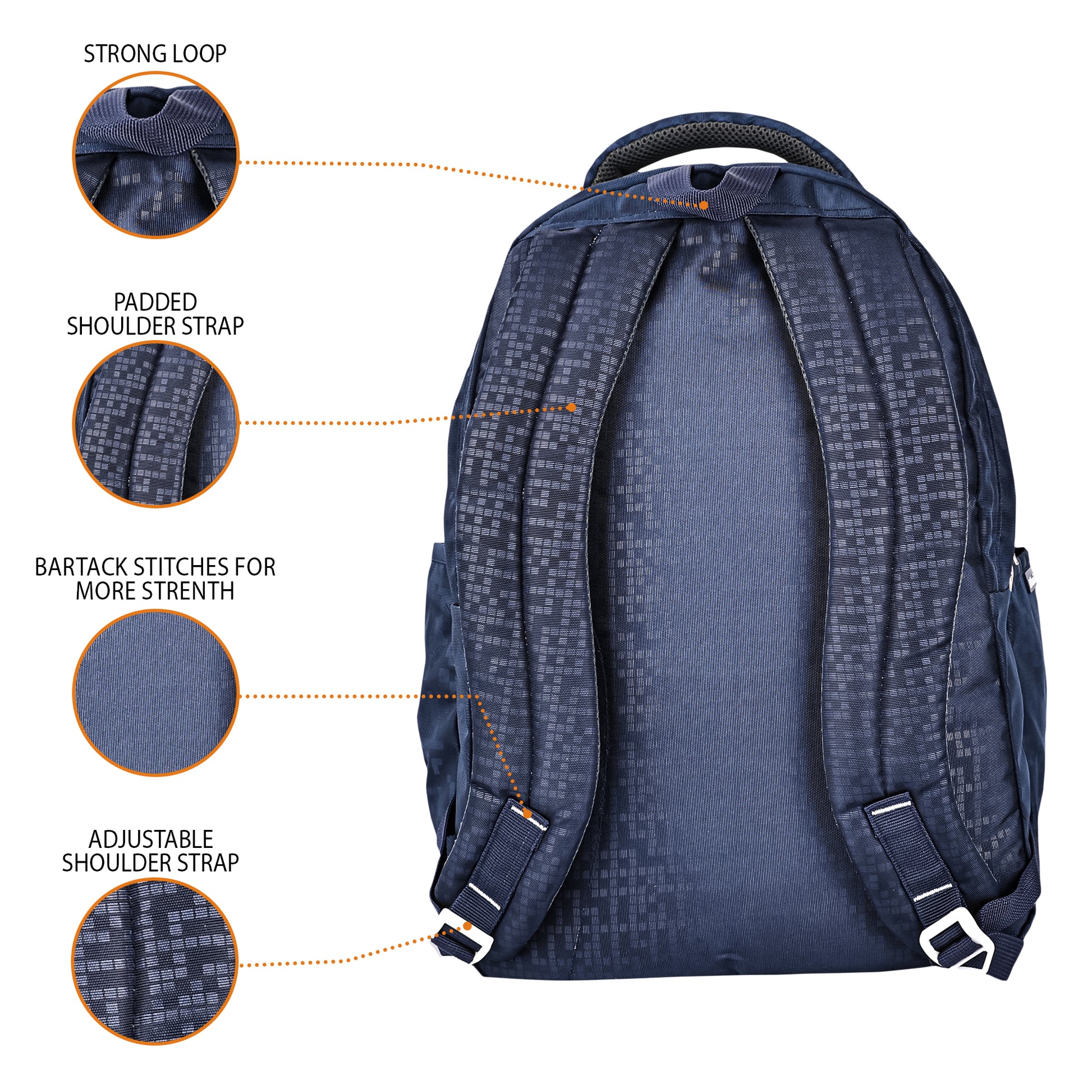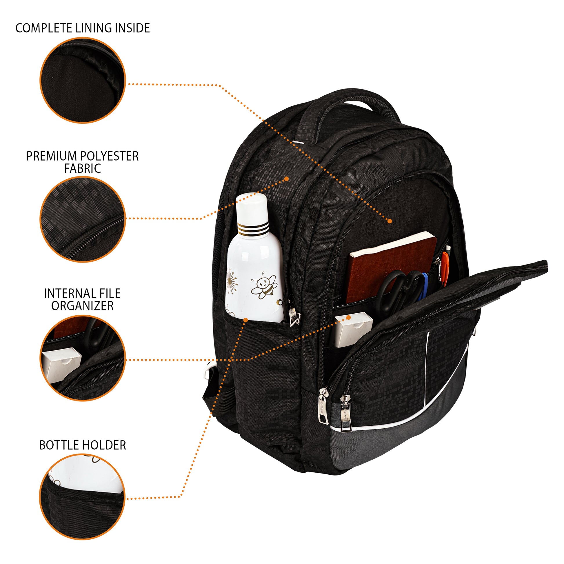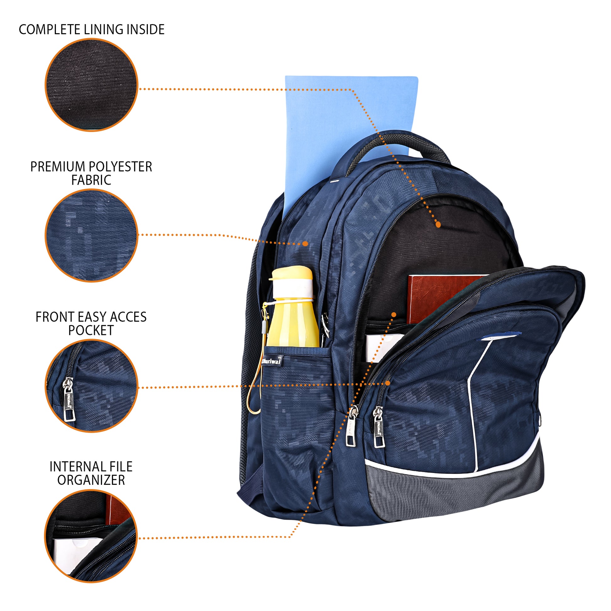 हल्का और जगहदार लैपटॉप बैकपैक जिसमें 2 कम्पार्टमेंट और 2 आगे की ओर आसान पहुंच वाली पॉकेट हैं। एक कंपार्टमेंट लैपटॉप को अंदर ले जाने के लिए है। एक अन्य कम्पार्टमेंट में पेन, विजिटिंग कार्ड आदि के लिए एक आयोजक होता है, साथ ही कागजात, फाइलें आदि ले जाने के लिए जगह होती है। इसमें दोनों तरफ बोतलें रखने का प्रावधान होता है और आपके आराम के लिए गद्देदार कंधे की पट्टियाँ होती हैं।
