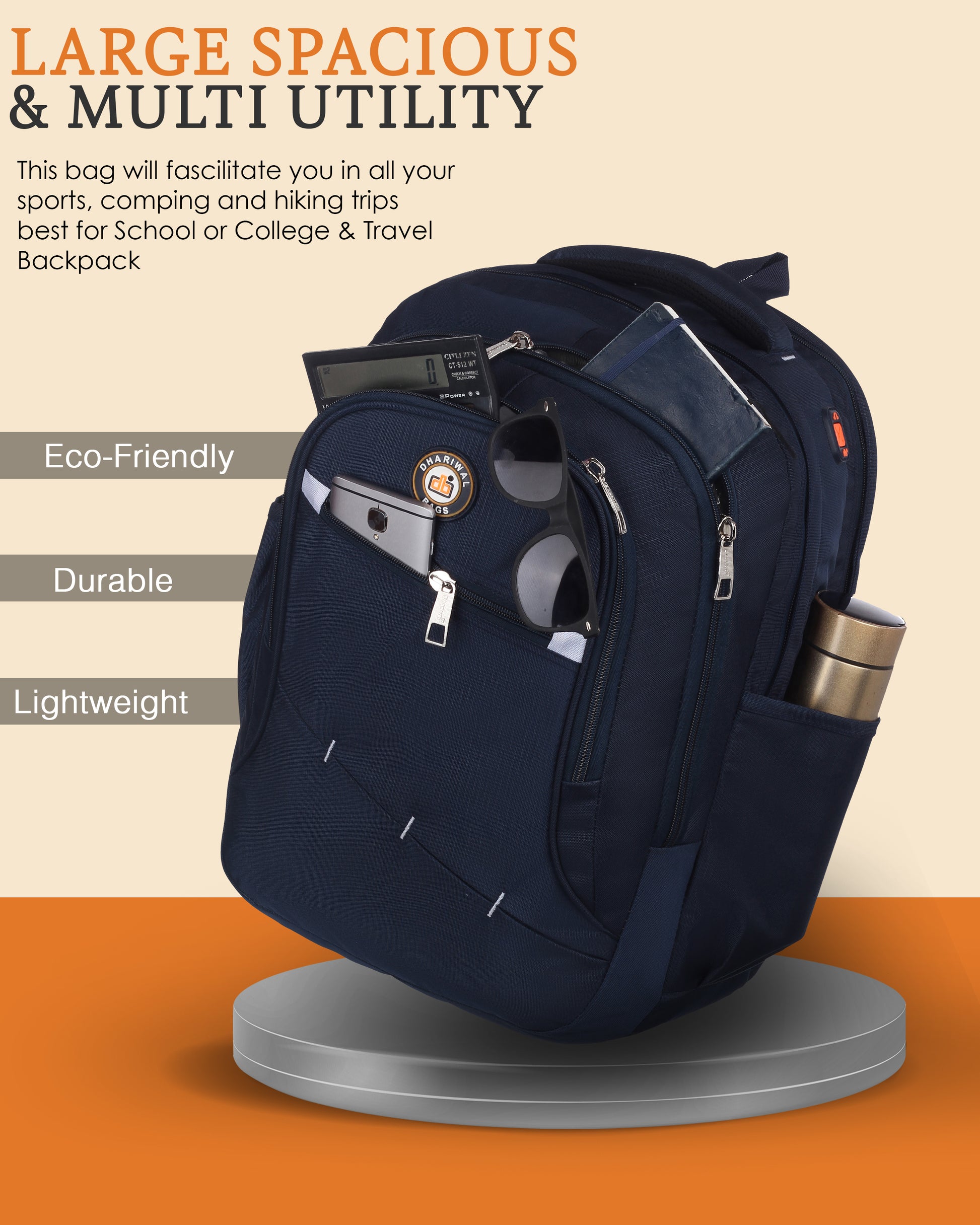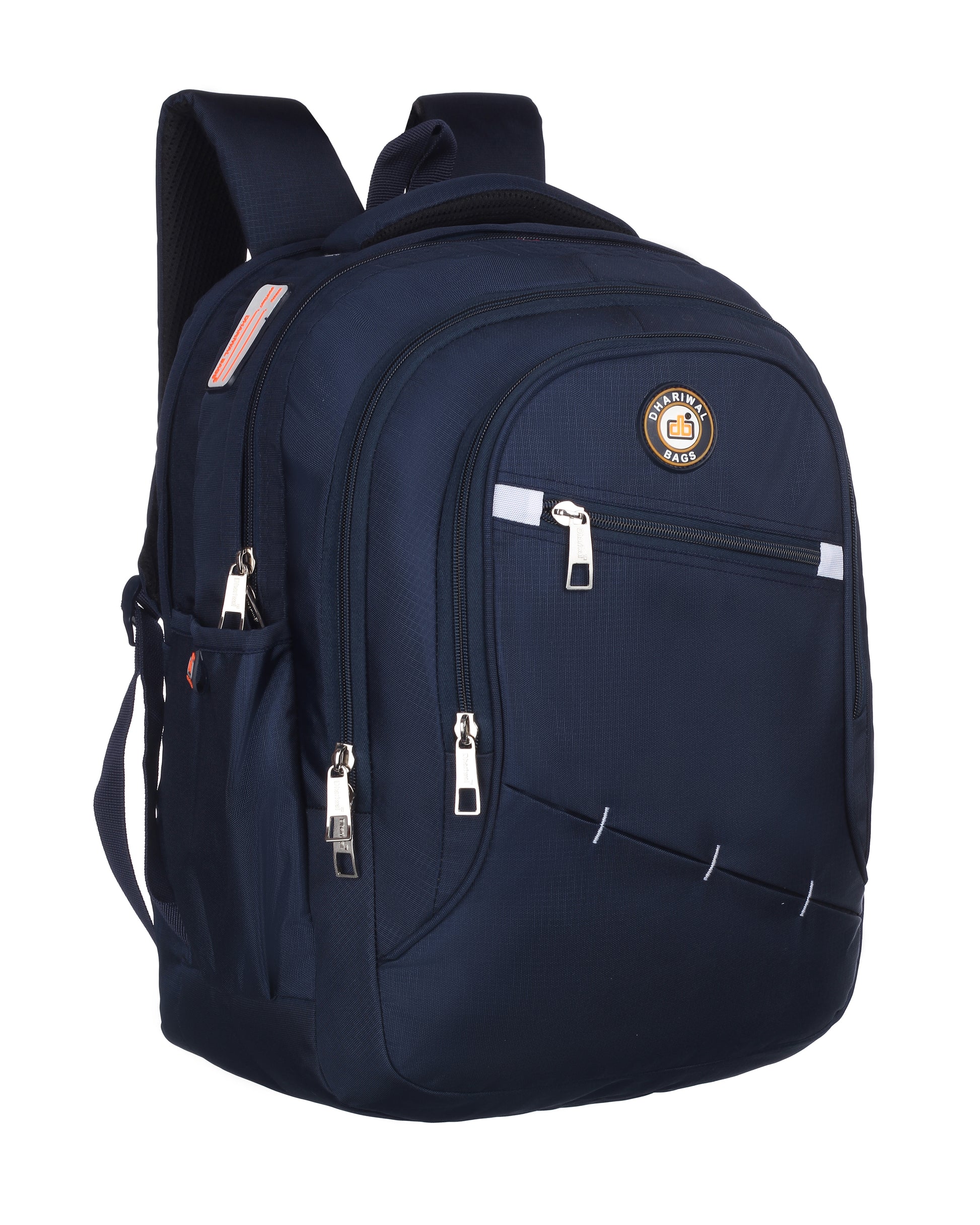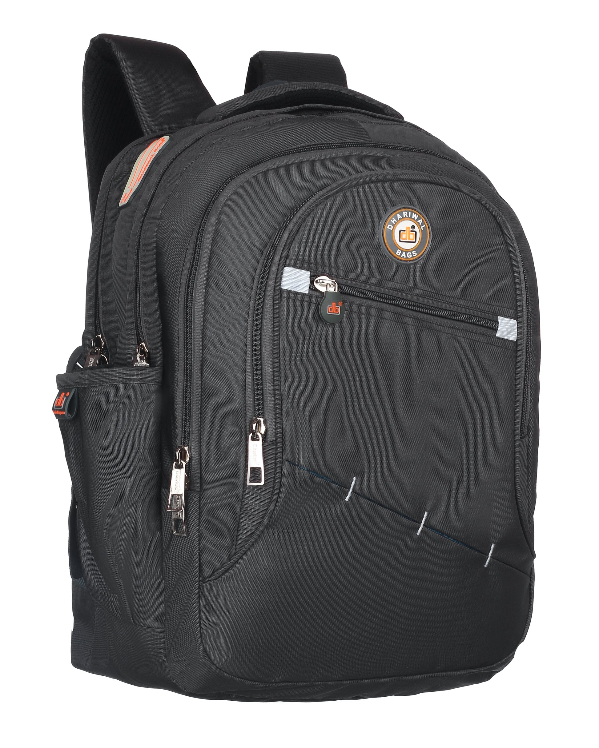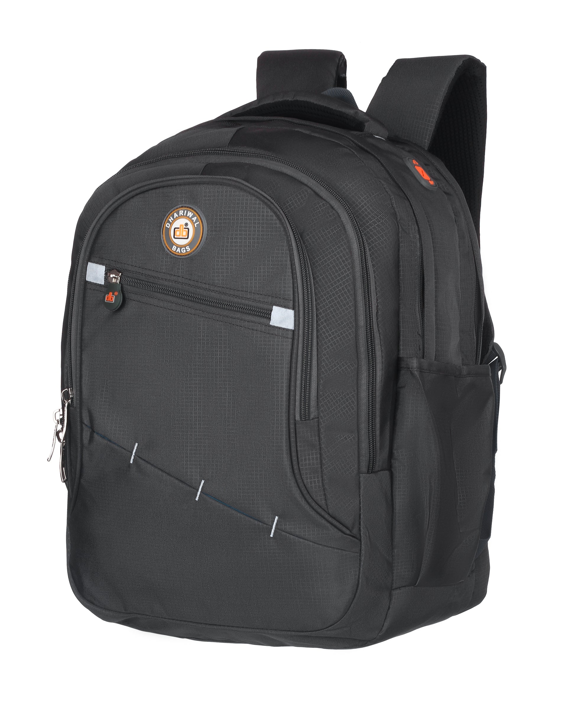 Dhariwal Unisex Dual Compartment Laptop Backpack With Rain Cover 43L BP-253 is Lightweight and spacious laptop backpack with 2 compartments and 3 front easy-access pockets. One compartment is for carrying a laptop inside. Another compartment has an organizer for pens, visiting cards, etc along with space for carrying papers, files, etc. It has provision for holding bottles on both sides and has padded shoulder straps for your comfort.