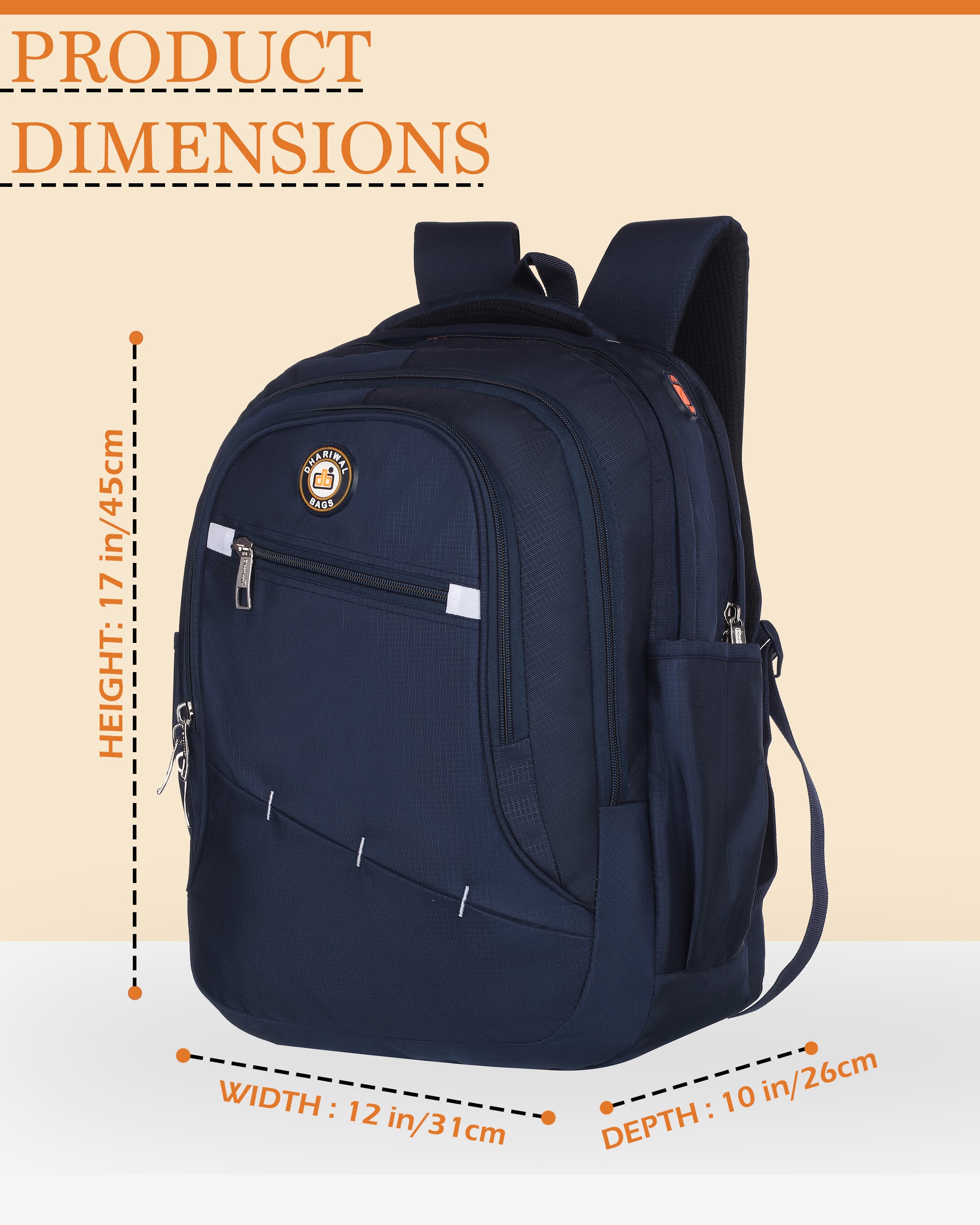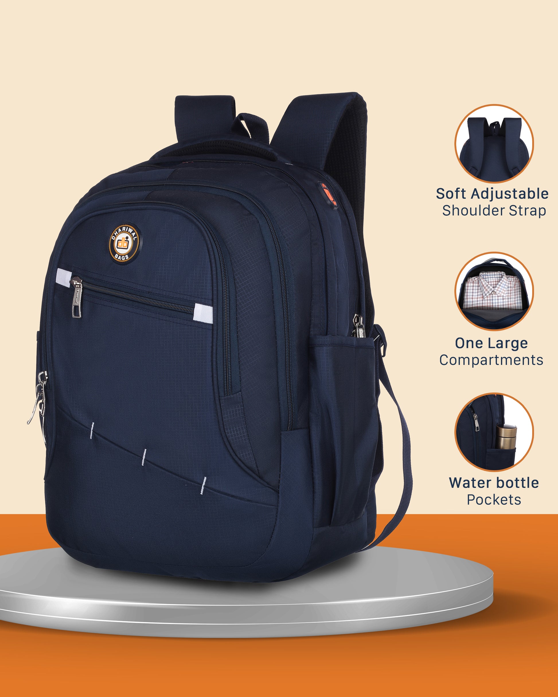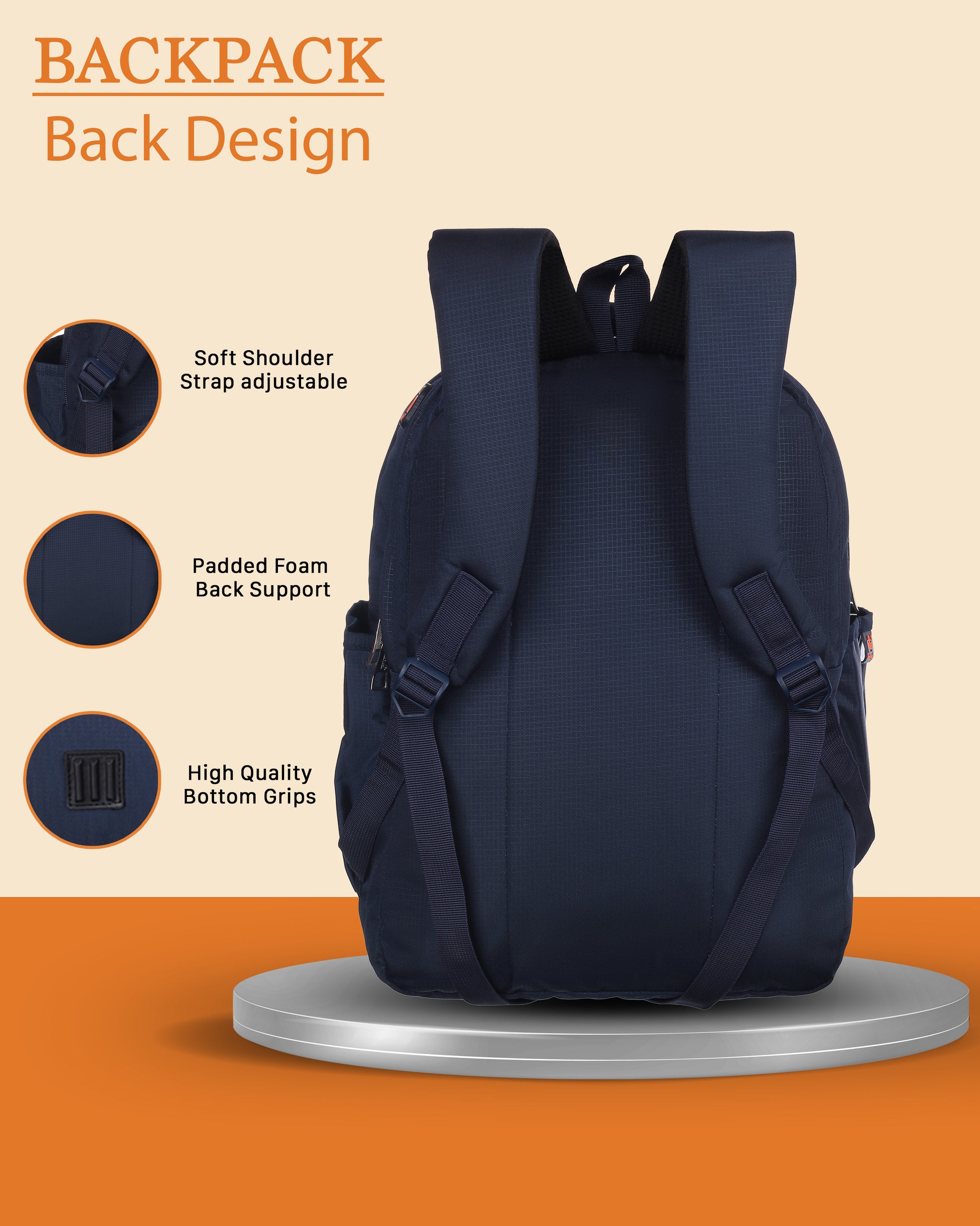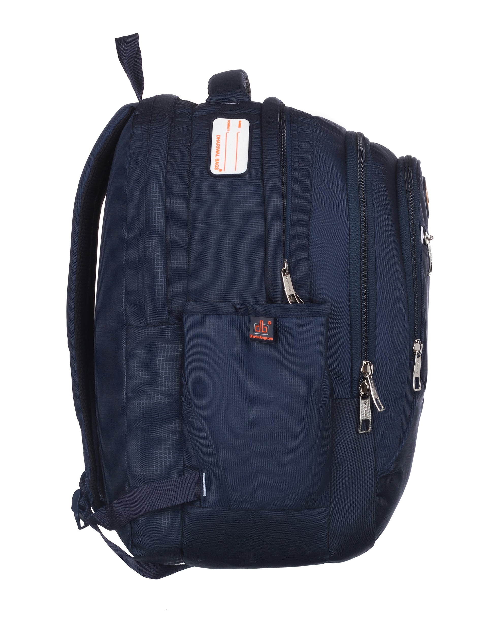 Dhariwal Unisex Dual Compartment Laptop Backpack With Rain Cover 43L BP-253 is Lightweight and spacious laptop backpack with 2 compartments and 3 front easy-access pockets. One compartment is for carrying a laptop inside. Another compartment has an organizer for pens, visiting cards, etc along with space for carrying papers, files, etc. It has provision for holding bottles on both sides and has padded shoulder straps for your comfort.