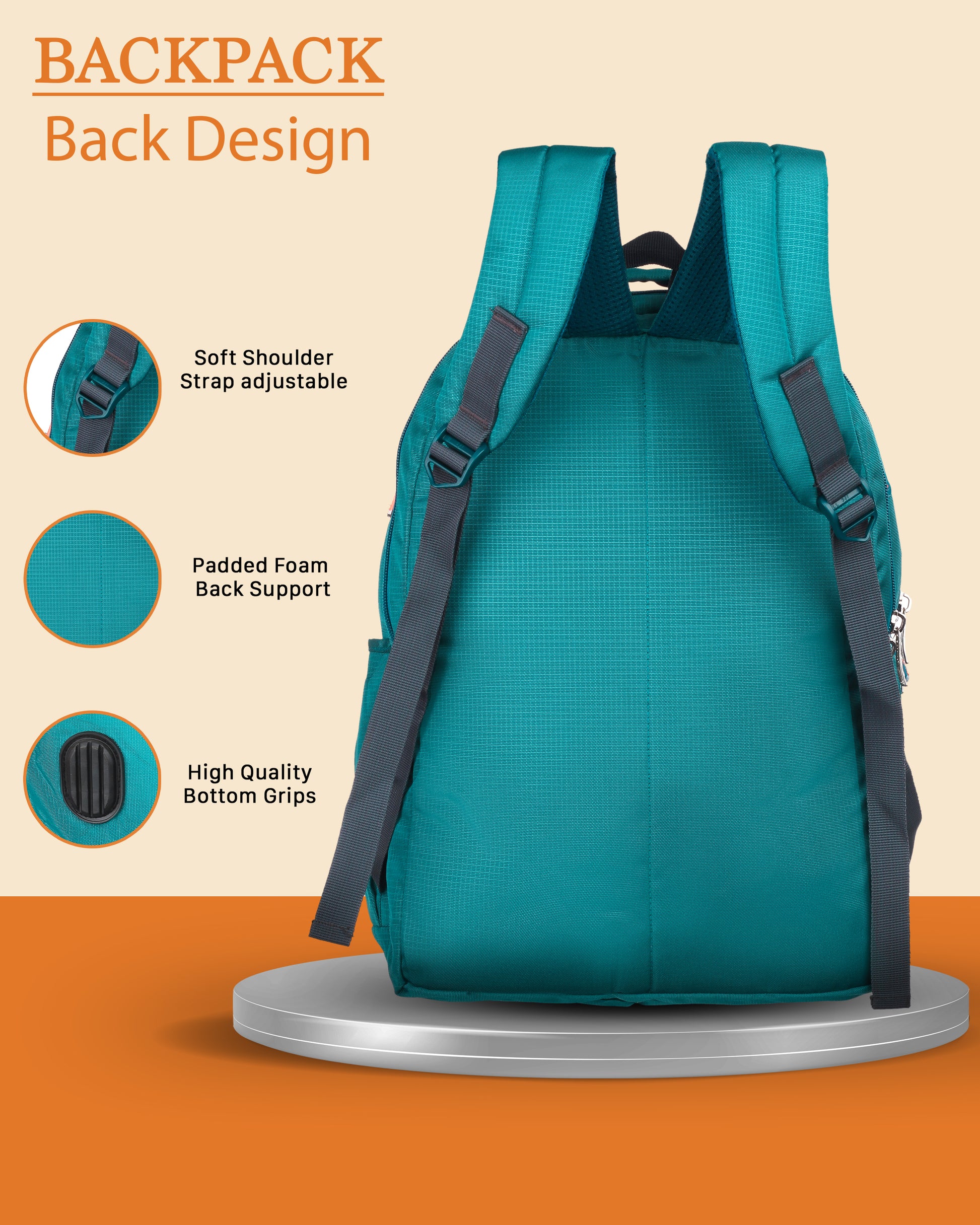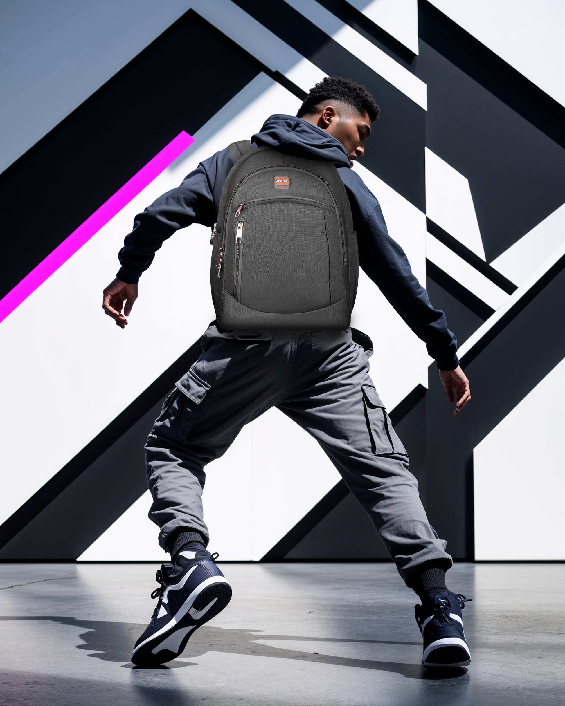 हल्का और जगहदार लैपटॉप बैकपैक जिसमें 2 कम्पार्टमेंट और 2 आगे की ओर आसान पहुंच वाली पॉकेट हैं। एक कंपार्टमेंट लैपटॉप को अंदर ले जाने के लिए है। एक अन्य कम्पार्टमेंट में पेन, विजिटिंग कार्ड आदि के लिए एक आयोजक होता है, साथ ही कागजात, फाइलें आदि ले जाने के लिए जगह होती है। इसमें दोनों तरफ बोतलें रखने का प्रावधान होता है और आपके आराम के लिए गद्देदार कंधे की पट्टियाँ होती हैं।