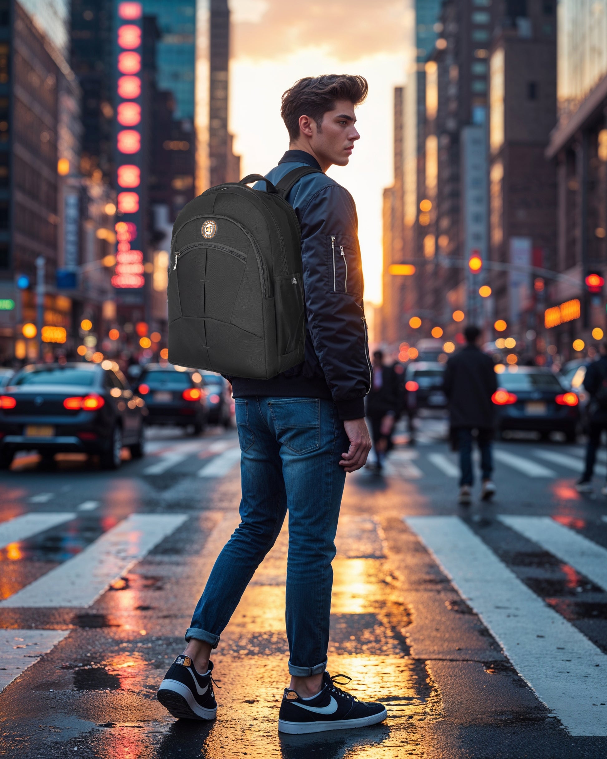 हल्का और जगहदार लैपटॉप बैकपैक जिसमें 2 कम्पार्टमेंट और 2 आगे की ओर आसान पहुंच वाली पॉकेट हैं। एक कंपार्टमेंट लैपटॉप को अंदर ले जाने के लिए है। एक अन्य कम्पार्टमेंट में पेन, विजिटिंग कार्ड आदि के लिए एक आयोजक होता है, साथ ही कागजात, फाइलें आदि ले जाने के लिए जगह होती है। इसमें दोनों तरफ बोतलें रखने का प्रावधान होता है और आपके आराम के लिए गद्देदार कंधे की पट्टियाँ होती हैं।