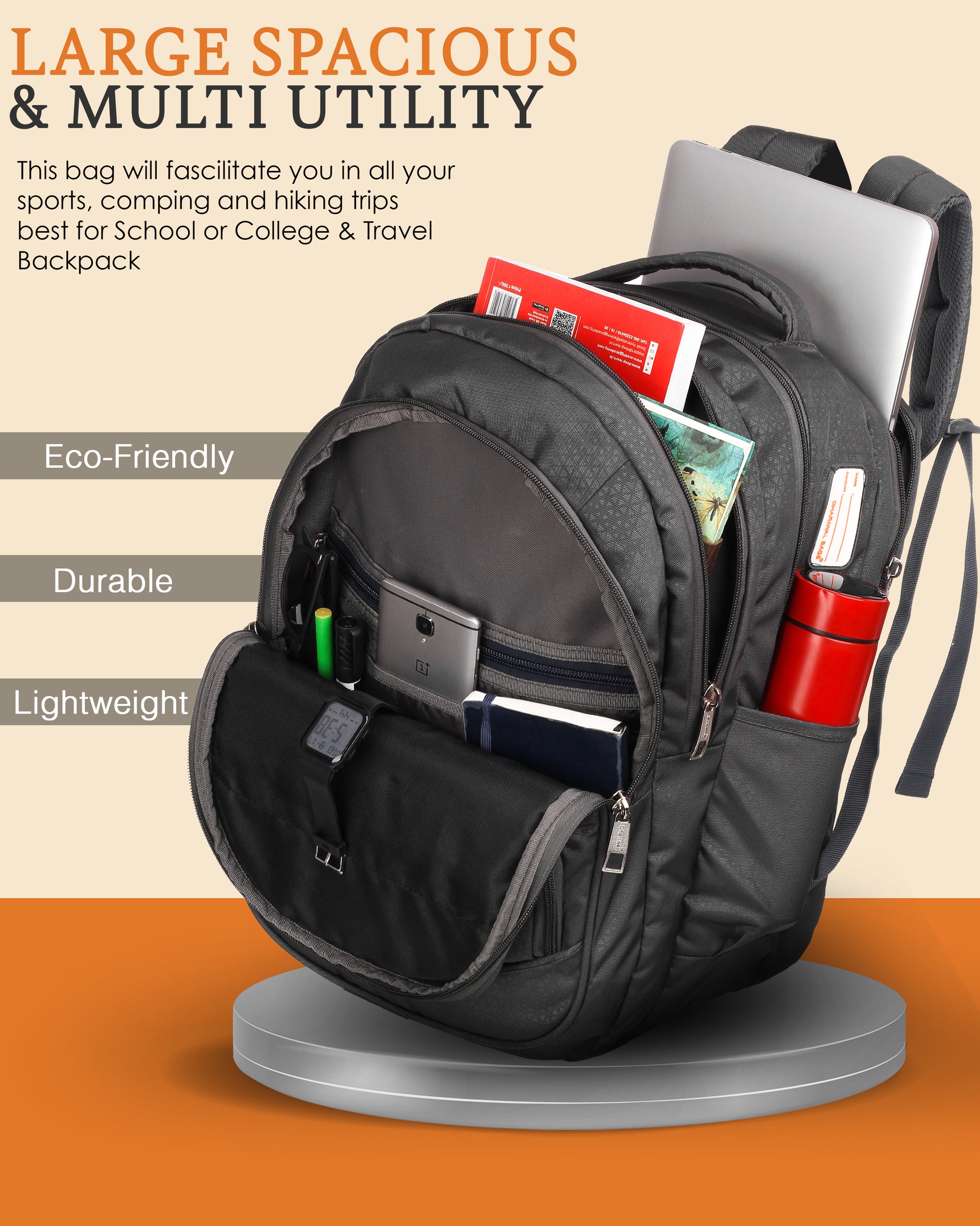 हल्का और जगहदार लैपटॉप बैकपैक जिसमें 2 कम्पार्टमेंट और 2 आगे की ओर आसान पहुंच वाली पॉकेट हैं। एक कंपार्टमेंट लैपटॉप को अंदर ले जाने के लिए है। एक अन्य कम्पार्टमेंट में पेन, विजिटिंग कार्ड आदि के लिए एक आयोजक होता है, साथ ही कागजात, फाइलें आदि ले जाने के लिए जगह होती है। इसमें दोनों तरफ बोतलें रखने का प्रावधान होता है और आपके आराम के लिए गद्देदार कंधे की पट्टियाँ होती हैं।