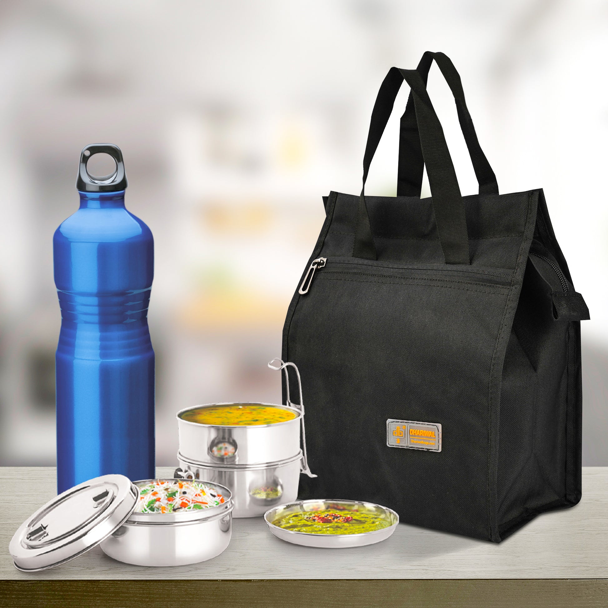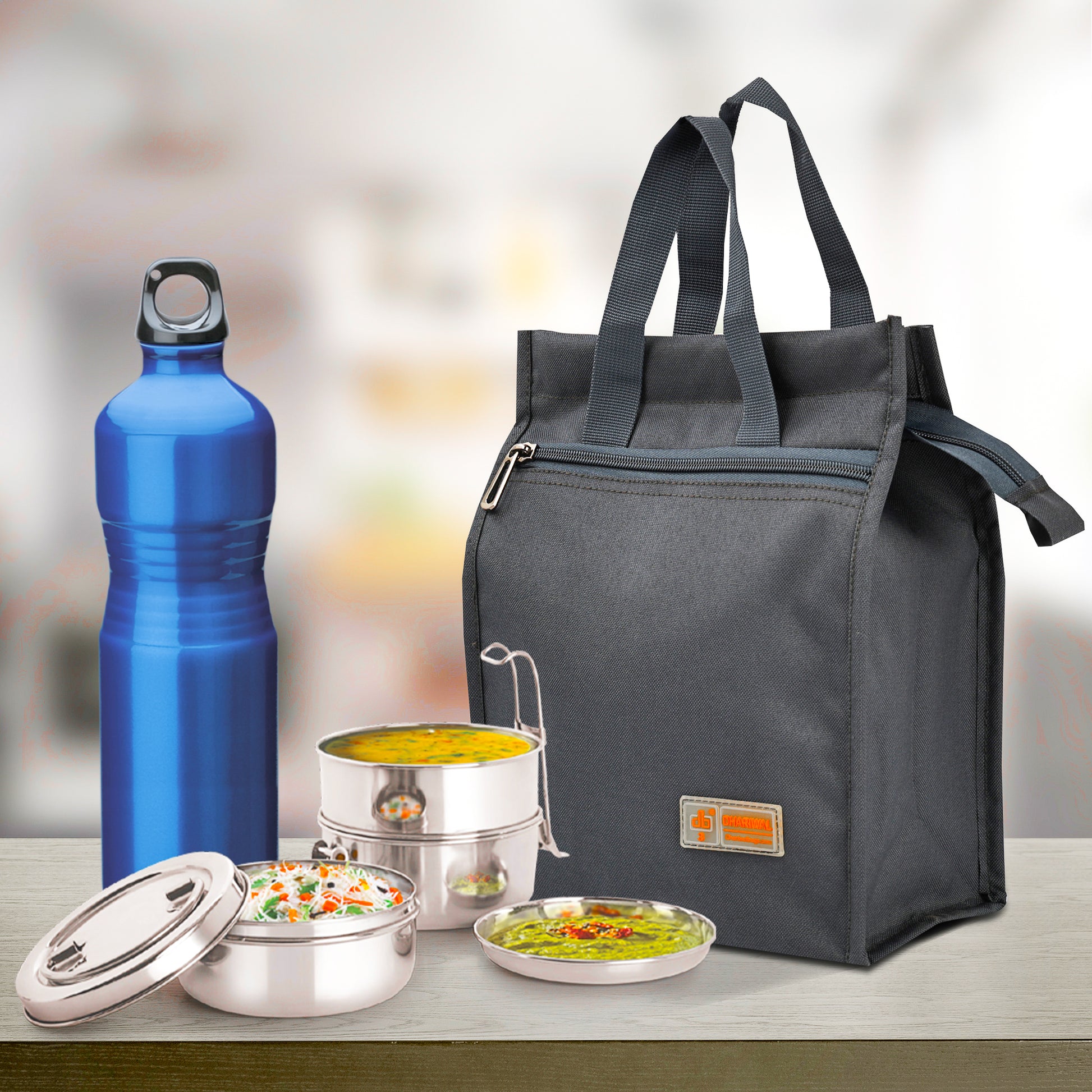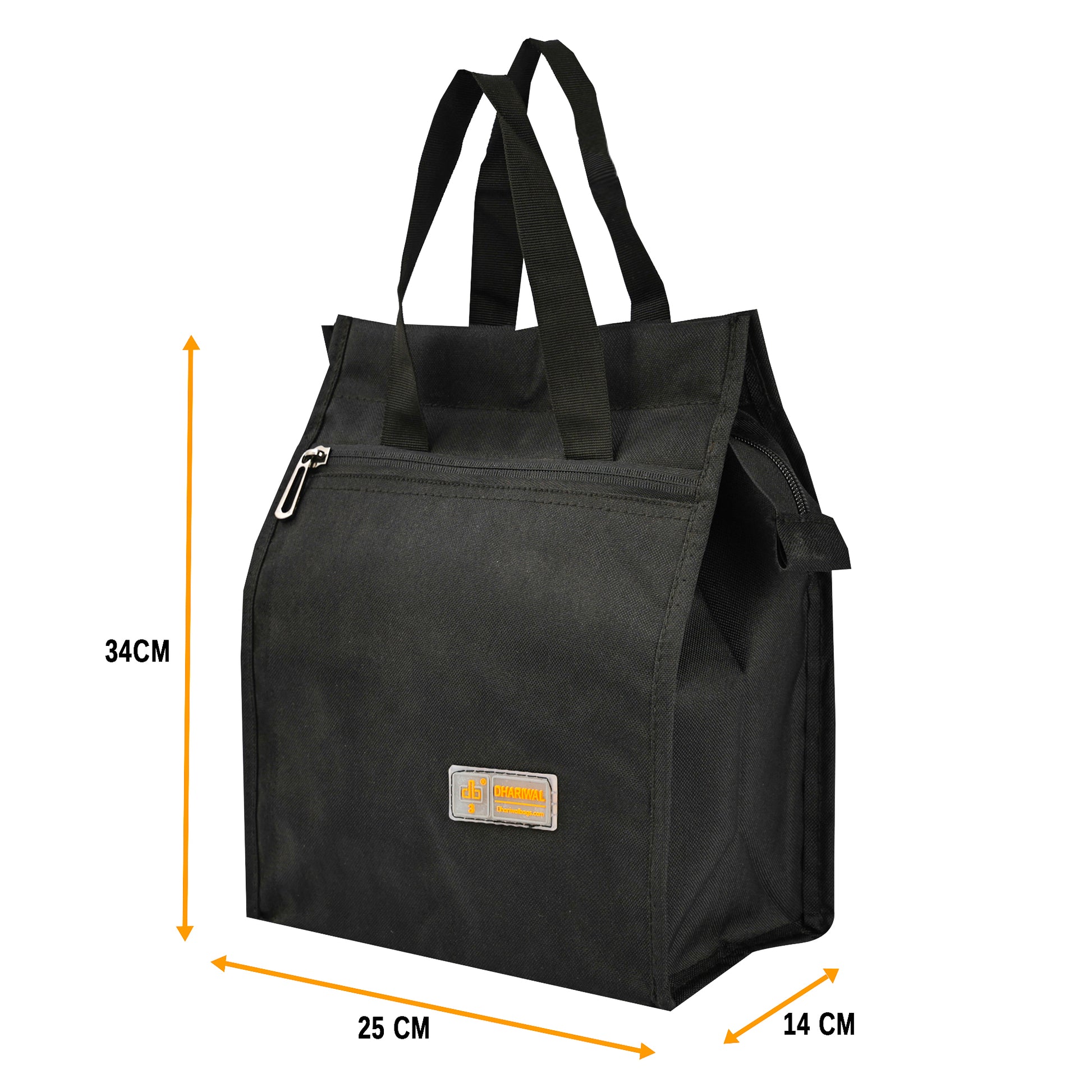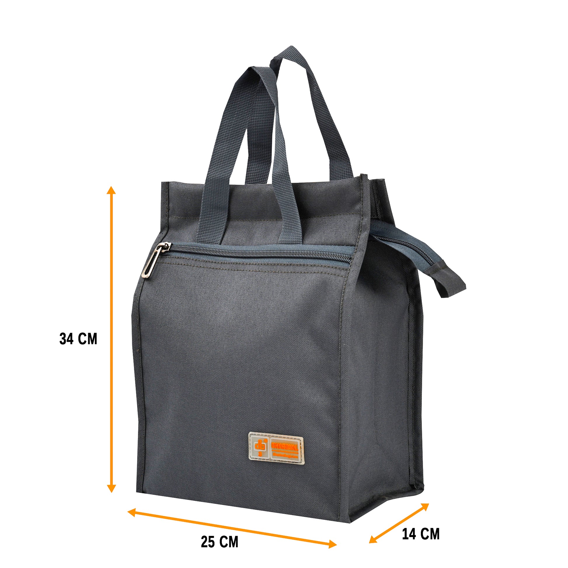 - इस बैग में 2 कम्पार्टमेंट हैं: 1 लंच बॉक्स और पानी की बोतलों के लिए बड़ा कम्पार्टमेंट, चम्मच, फोर्क और टिशू पेपर रखने के लिए दूसरा कम्पार्टमेंट, क्वालिटी ज़िपर क्लोज़र, लक्ज़री पैडेड हैंडल