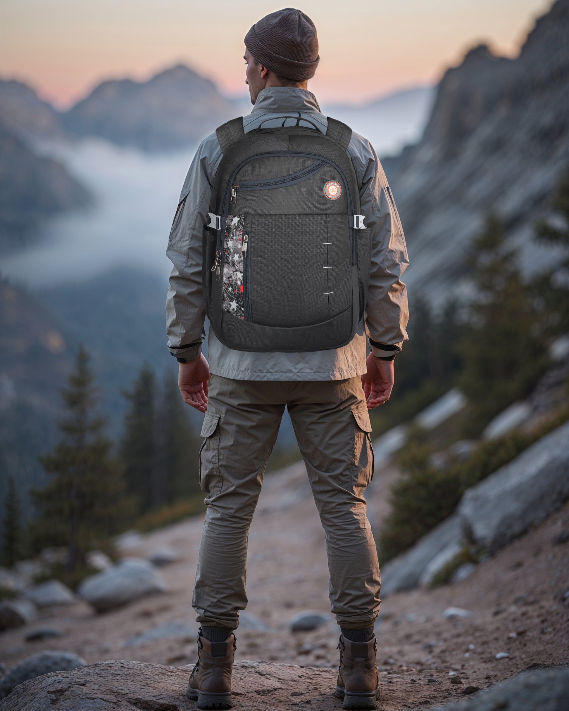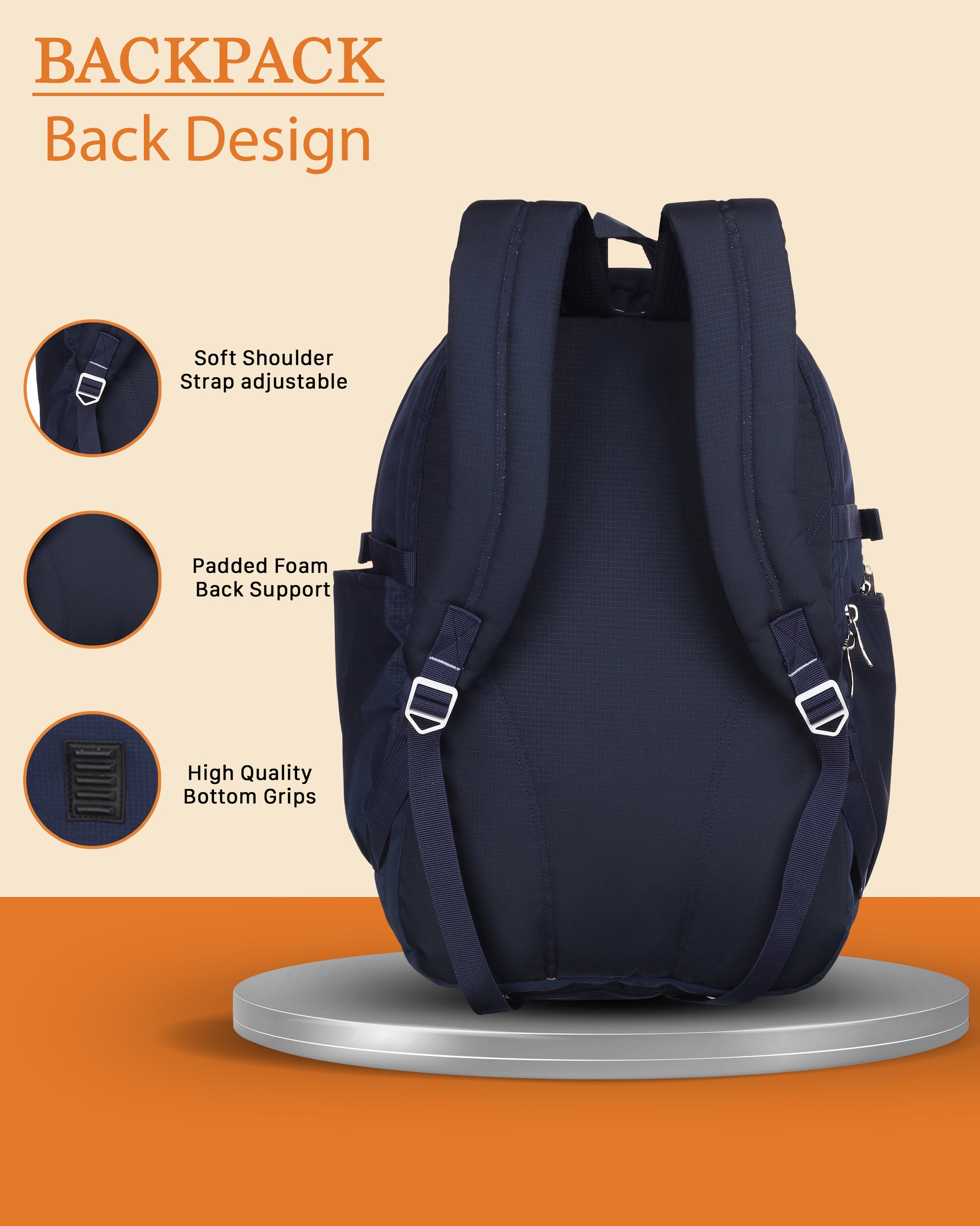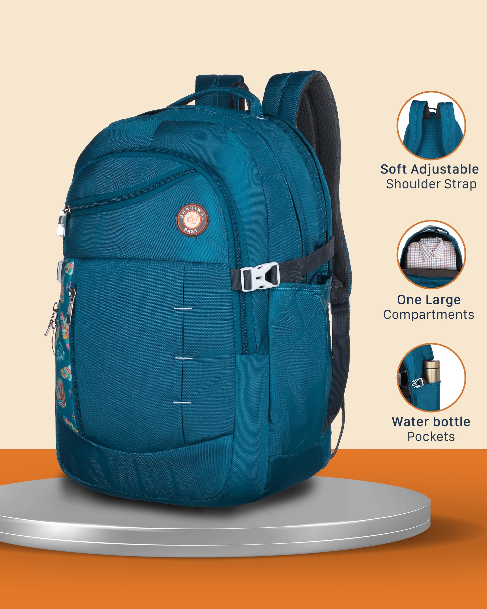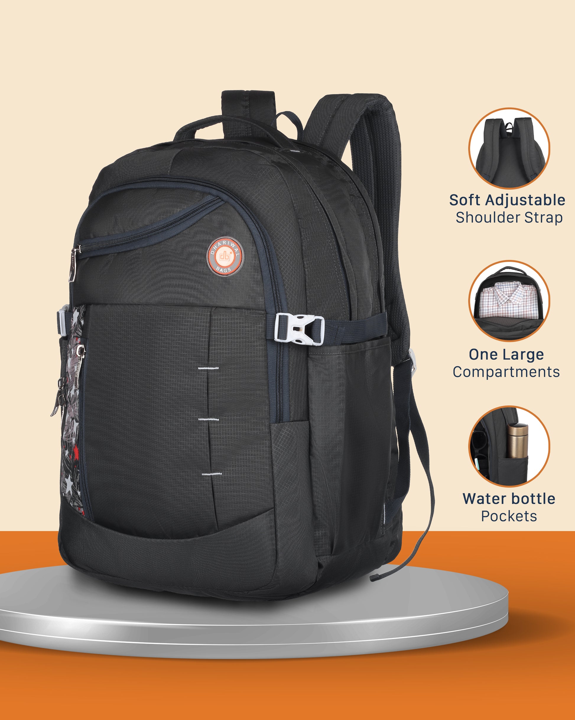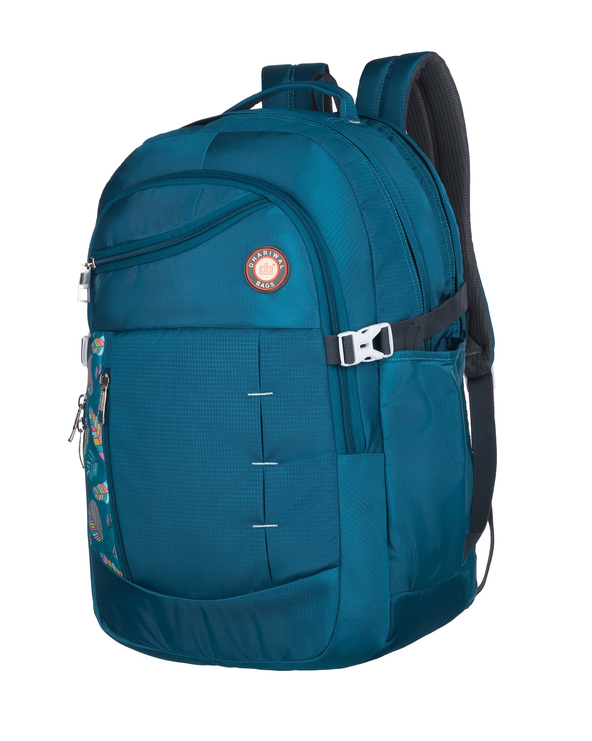 Dhariwal Unisex Dual Compartment Laptop Backpack With Rain Cover 58L BP-254 is Lightweight and spacious laptop backpack with 2 compartments and 3 front easy-access pockets. One compartment is for carrying a laptop inside. Another compartment has an organizer for pens, visiting cards, etc along with space for carrying papers, files, etc. It has provision for holding bottles on both sides and has padded shoulder straps for your comfort.