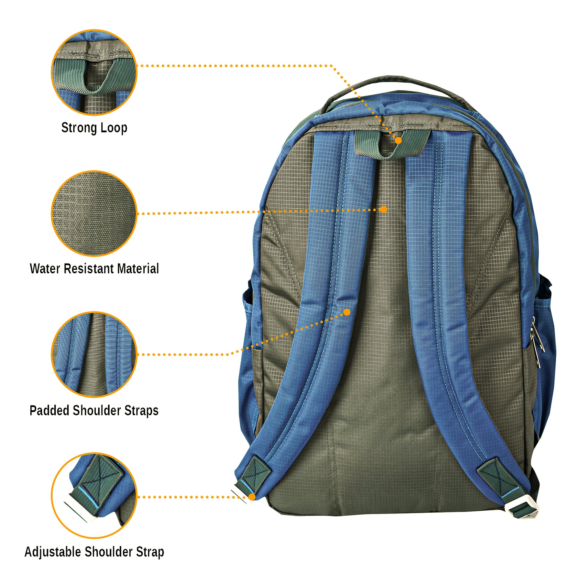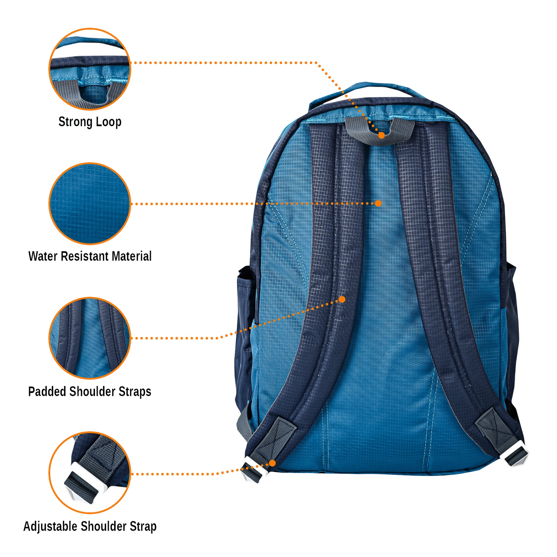 - Side Pockets:- 2 Durable elasticized mesh pockets on both sides fits water bottles, small compact umbrella, and other items
