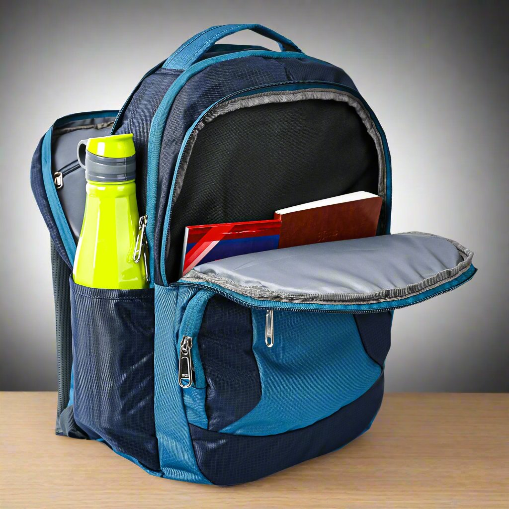 Lightweight and spacious laptop backpack with 3 main compartments and 2 front easy-access pockets. One compartment has an organizer for pens, visiting cards, etc along with space for carrying papers, files, etc. It has provision for holding bottles on both sides and has padded shoulder straps for your comfort.