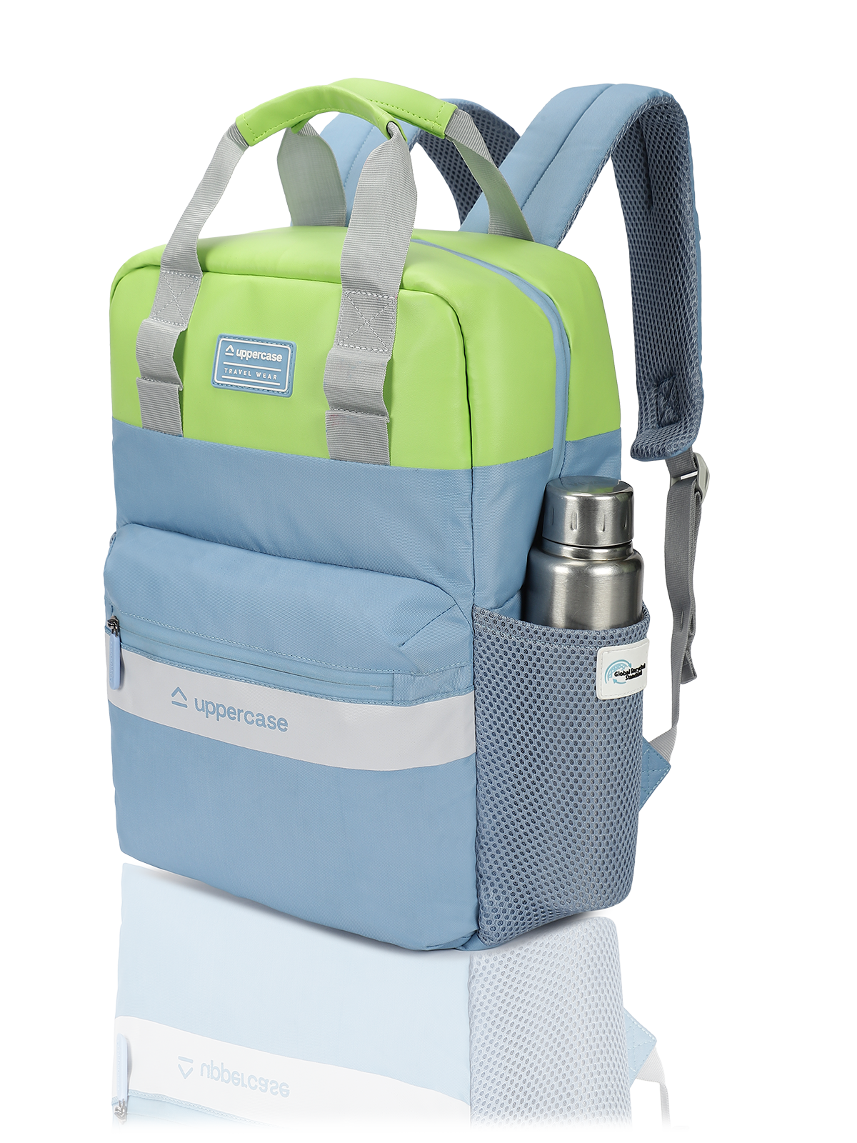 uppercase Medium 17 Lts Vegan Leather Laptop Backpack - a durable, stylish companion crafted from premium, robust materials with wrinkle-free, water-resistant design and rainproof zippers for ultimate protection. This backpack comes with a generous 2-year international warranty, boasting sturdy stitching and ideal dimensions for lasting quality. Embrace sustainability with its GRS certification, made from over 50% recycled materials and featuring padded compartments for 15” laptop and breathable back padding for comfort. Travel conveniently with its trolley sleeve for secure luggage placement, and enjoy versatile storage via its front access pocket, two bottle holders, and a top pocket for quick access to essentials. Elevate your journey with the uppercase Laptop Backpack, designed for style, durability, and seamless organization on-the-go.