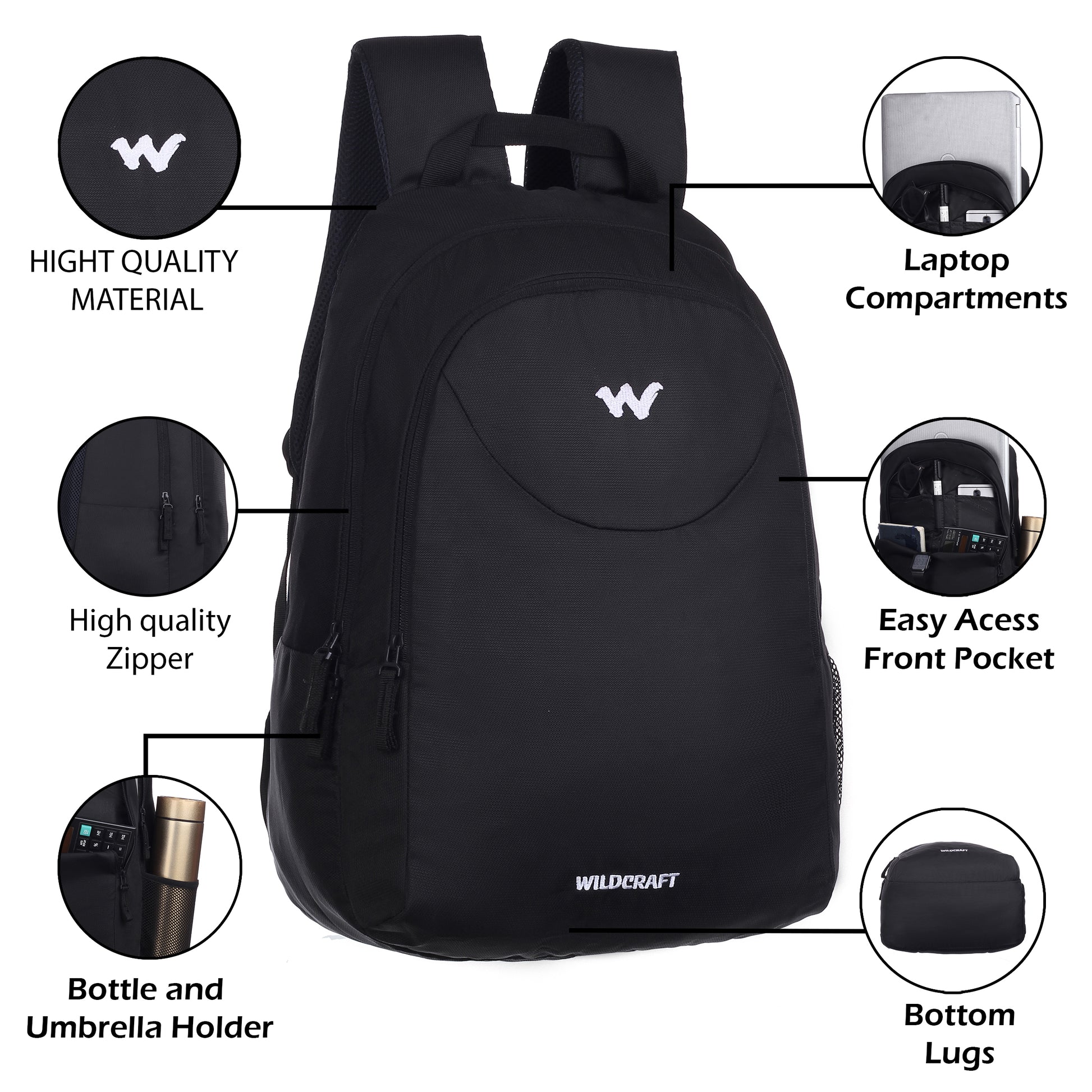 Sleek Aesthetics: The timeless all-black design, accented with the signature Wildcraft branding, makes it a versatile accessory that pairs well with any outfit.