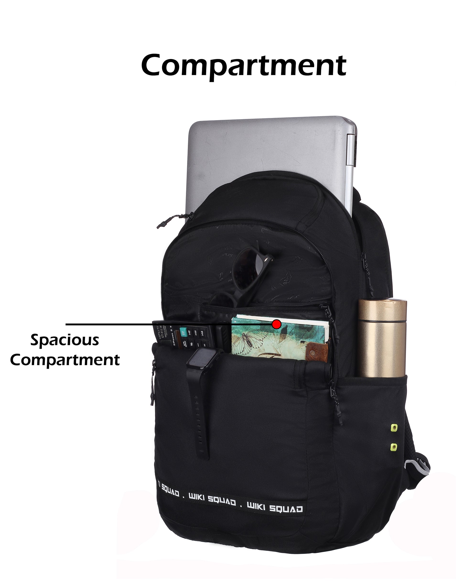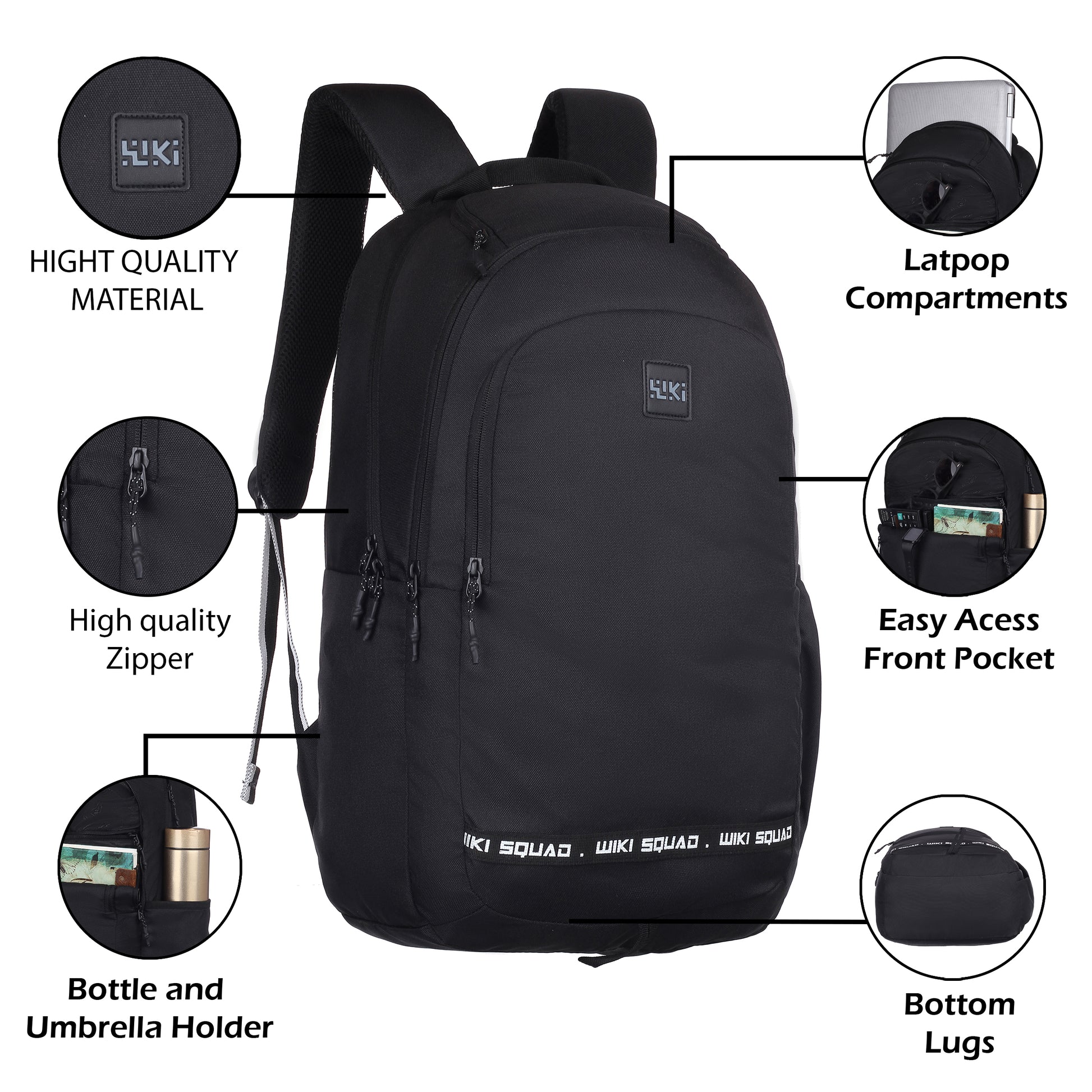Material : Nylon Wrinkle Fabric; Double compartment bag with multi-level organiser,Multi-level organiser that keeps everything clutter-freeIn-built rain cover to keep everything warm and dry,Sleeve separator section for essentials. Side fabric pocket for water bottle,Quick grab padded haul-loop for ease of carrying; Gusseted front tiffin pocket,Motorcycle Storm Printed Flap The nylon wrinkle fabric has a unique look which is resistant to external stress and retain their shape.The fabrics made from nylon materials inherit resilience and are lightweight Closure Type: Zipper; Pattern Name: Solid; Age Range Description: Adult; Smartly Organized Compartments Main compartment(s): Three spacious sections for books, clothes, or travel essentials. Front pocket(s): For quick-access items like pens, phone, or wallet. Multiple interior pockets: Keep smaller items organized and easy to find. Side mesh bottle holder: Convenient and sturdy for water bottles. The Wildcraft Wiki 35L Backpack is a stylish, versatile, and durable companion for everyday use—be it on campus, in the city, or on short trips. It offers smart storage, ergonomic comfort, and a water-resistant shell, making it a dependable, all-round backpack. Let me know if you’d like help finding where to buy one or comparing it with other models!