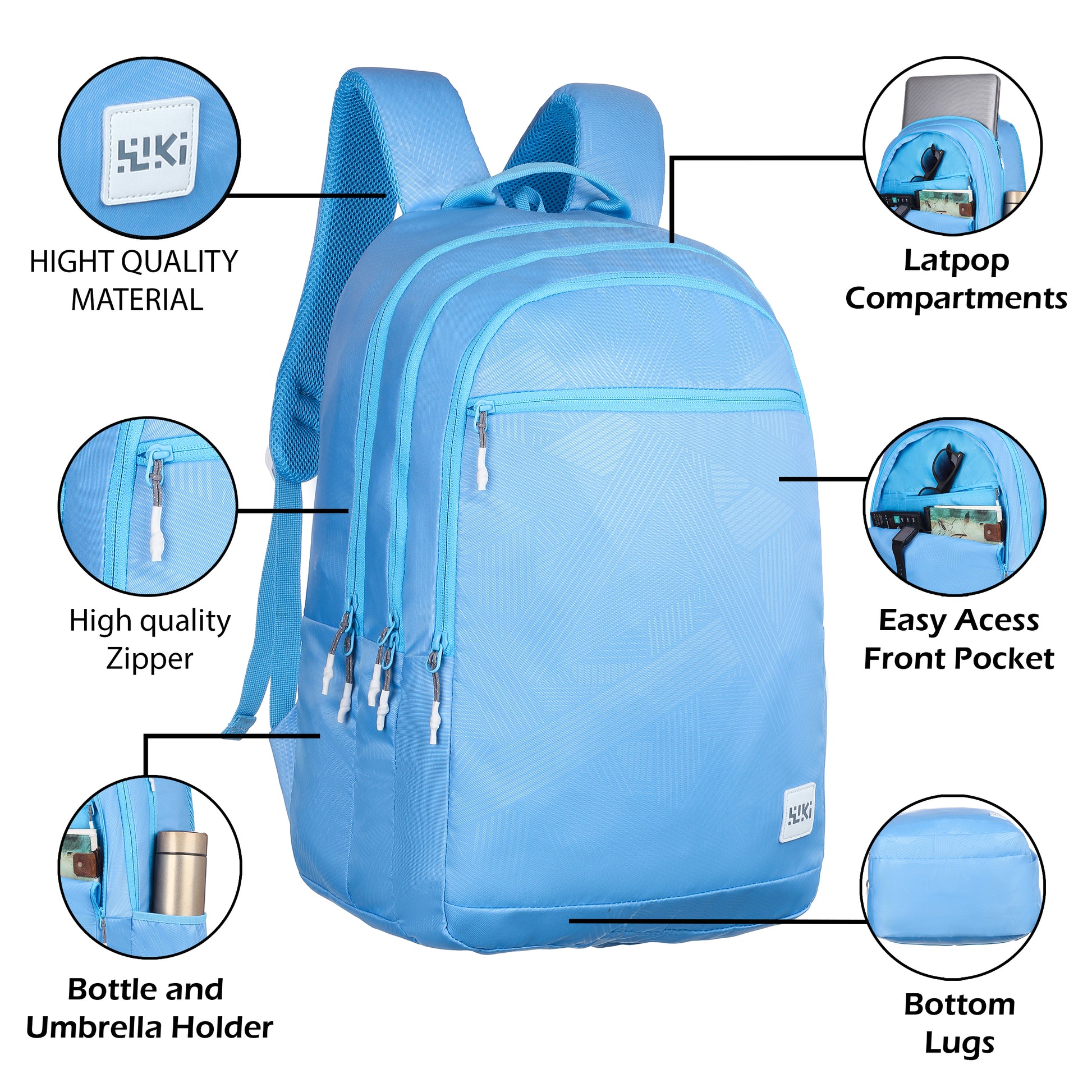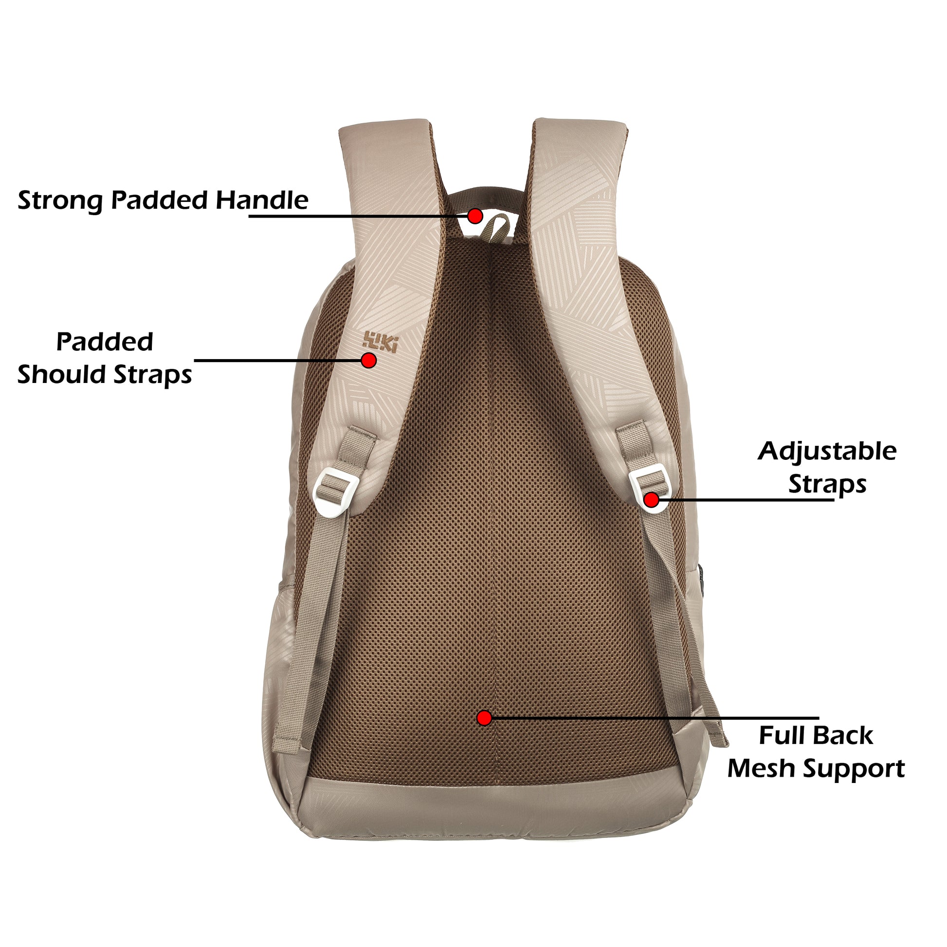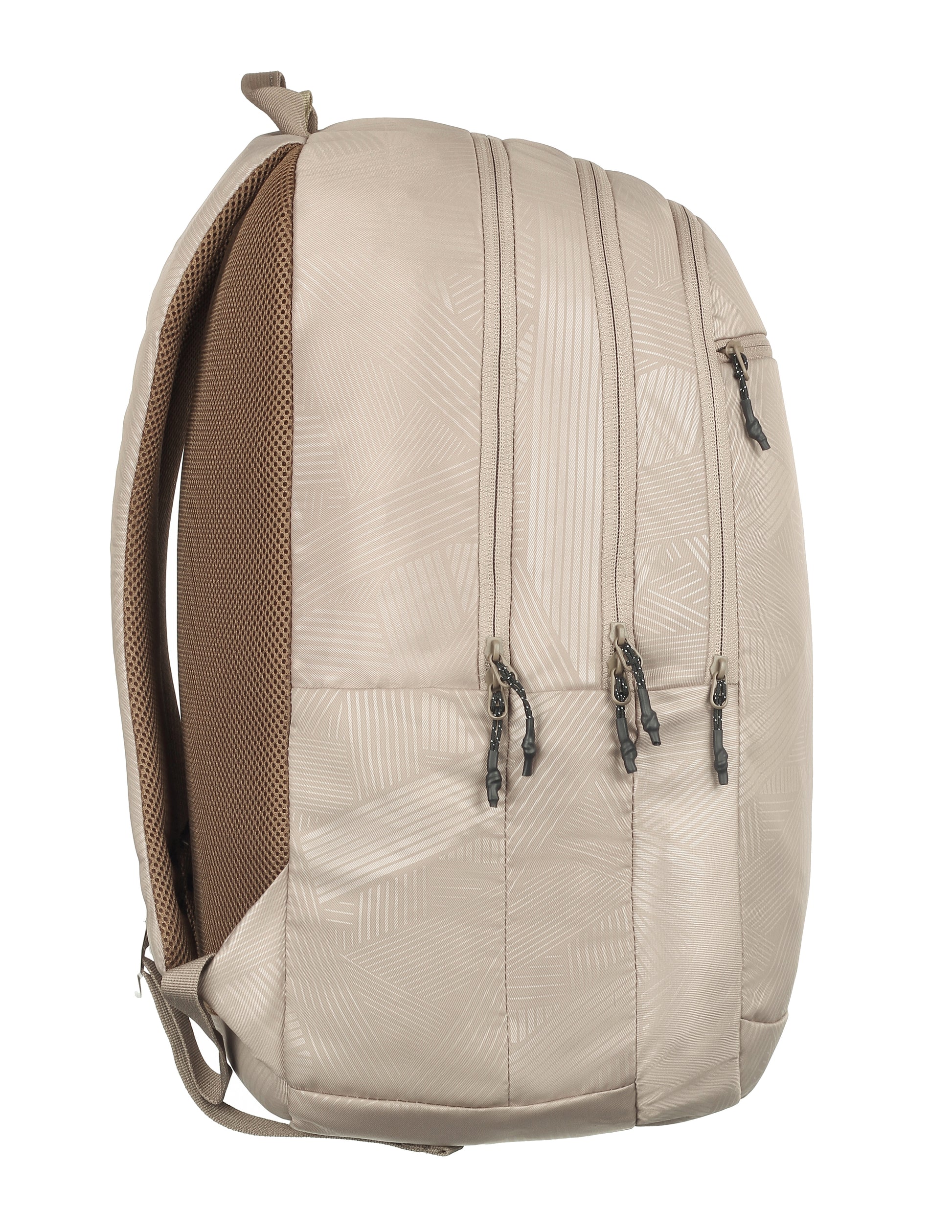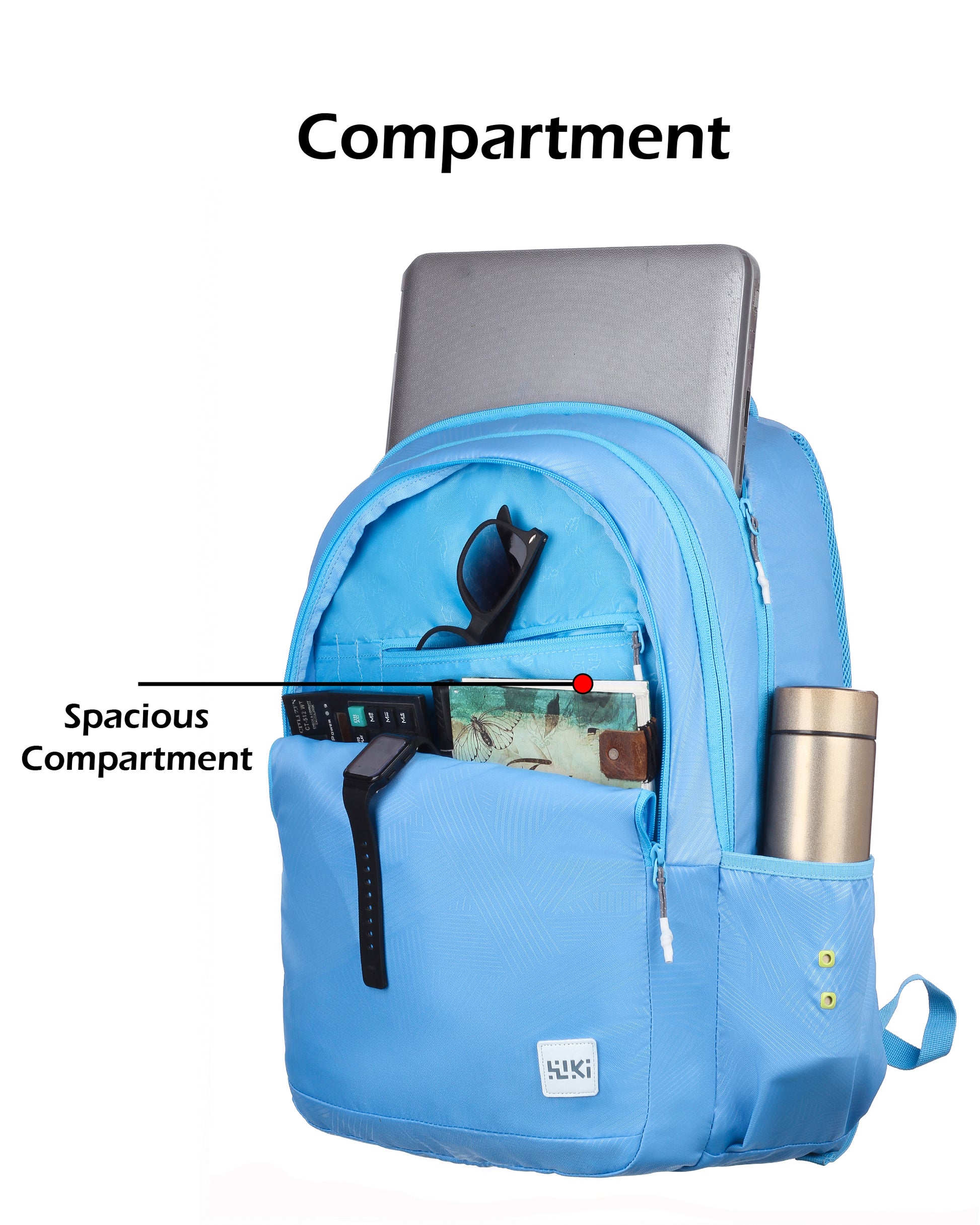 Three compartments for better organisation, side fabric pocket for carrying a bottle, padded back system for better back support, padded shoulder straps for comfort and ease of carrying, quick-grab haul loop, multi-level organiser for storing accessories, sleeve separator, lining separator for better organisation inside the compartment. Outer Material: Polyester, Color: Black and Mel, Ideal For: Men & Women Water Resistance: Water resistant; Dimensions: 27 cms x 34 cms x 48 cms (LxWxH) Number of compartments: 3; Laptop Compatibility: Yes, Target Audience: Unisex Age Range Description: Adult; Closure Type: Zipper; Special Features: Laptop Compartment; Pocket Description: Utility Pocket